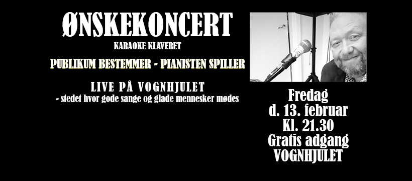 Fredag aften på Vognhjulet byder på en helt særlig oplevelse med fællessang og klaverspil. Her er der ingen krav om at synge rent, men derimod en garanti for, at alle synger med. Arrangementet opfordrer til at komme som du er, ønske din yndlingssang, og nyde en øl i selskab med andre sangglade gæster.